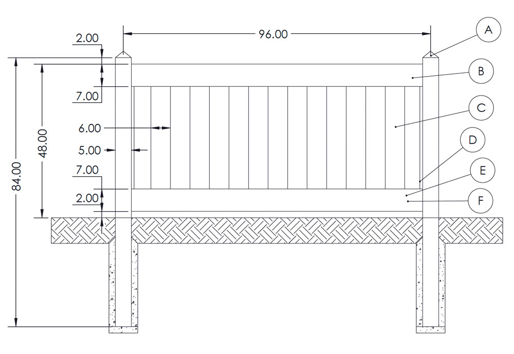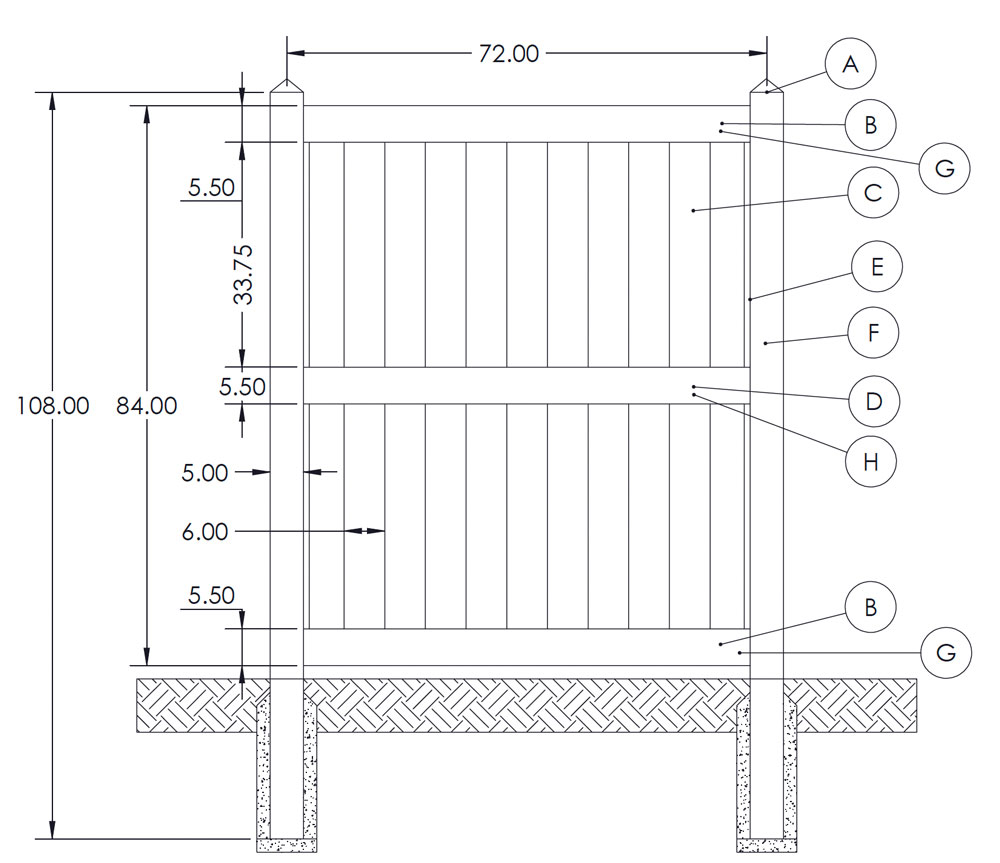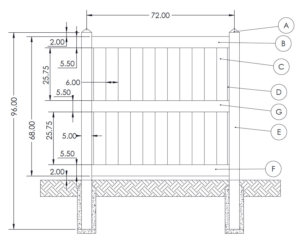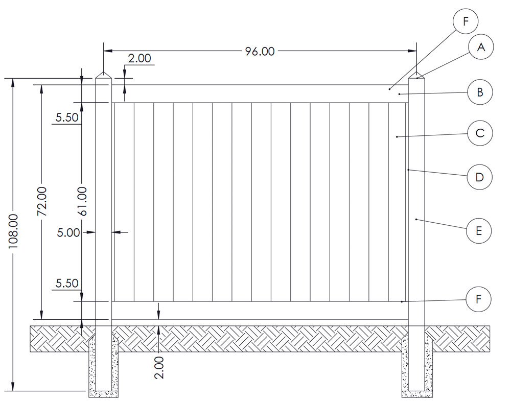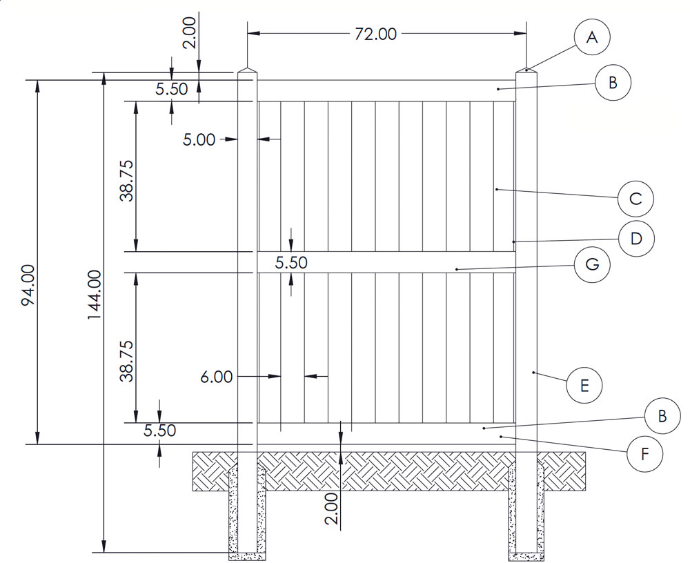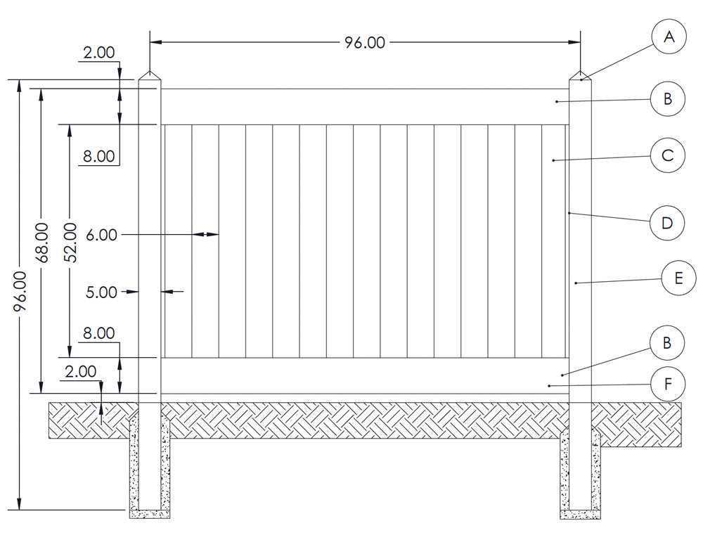 | B | 1 | LPRECUT | 12" × 96" Lattice Pannel |