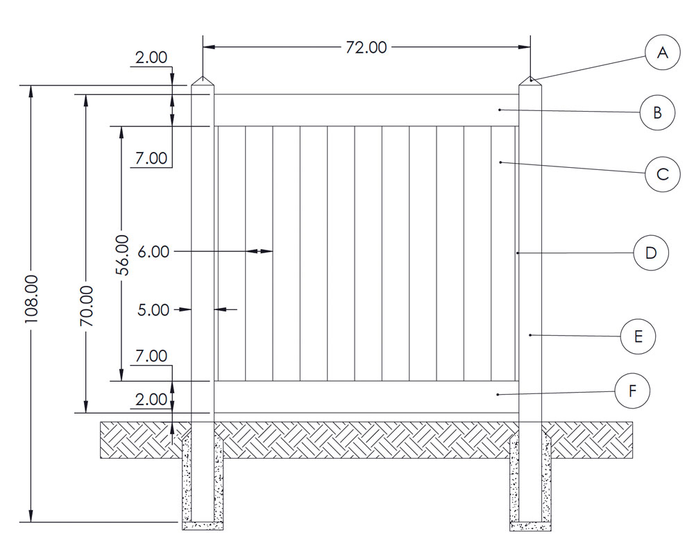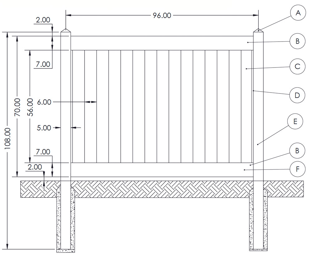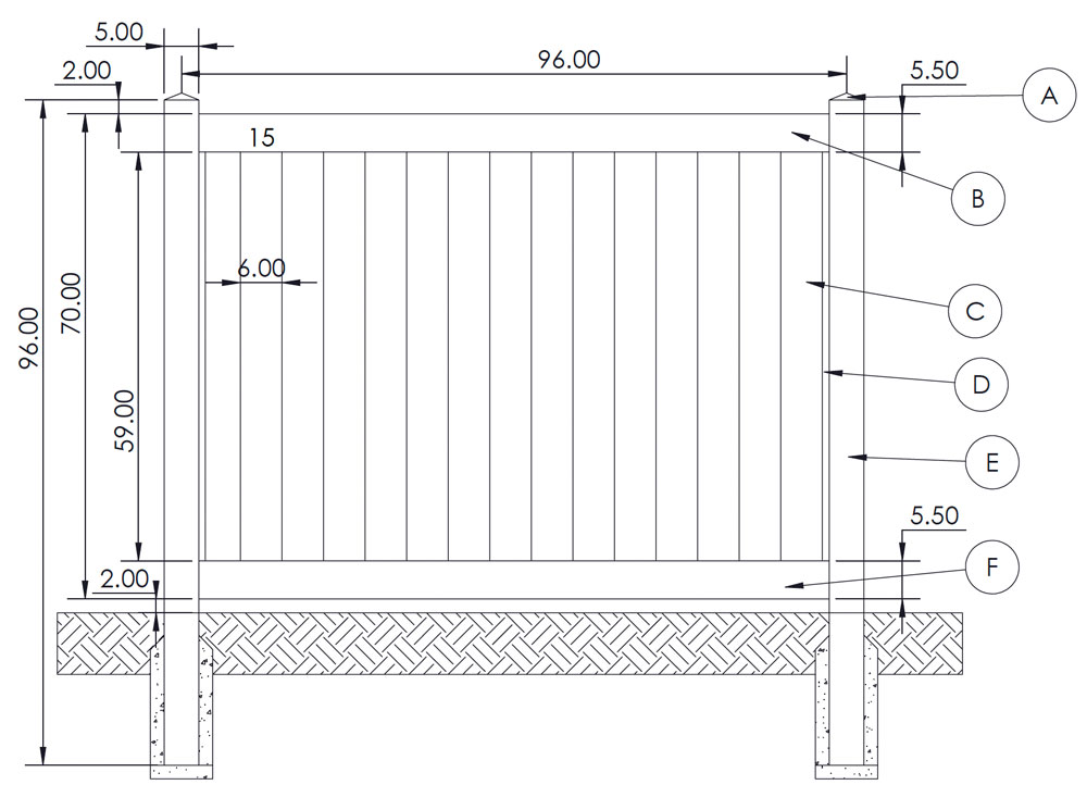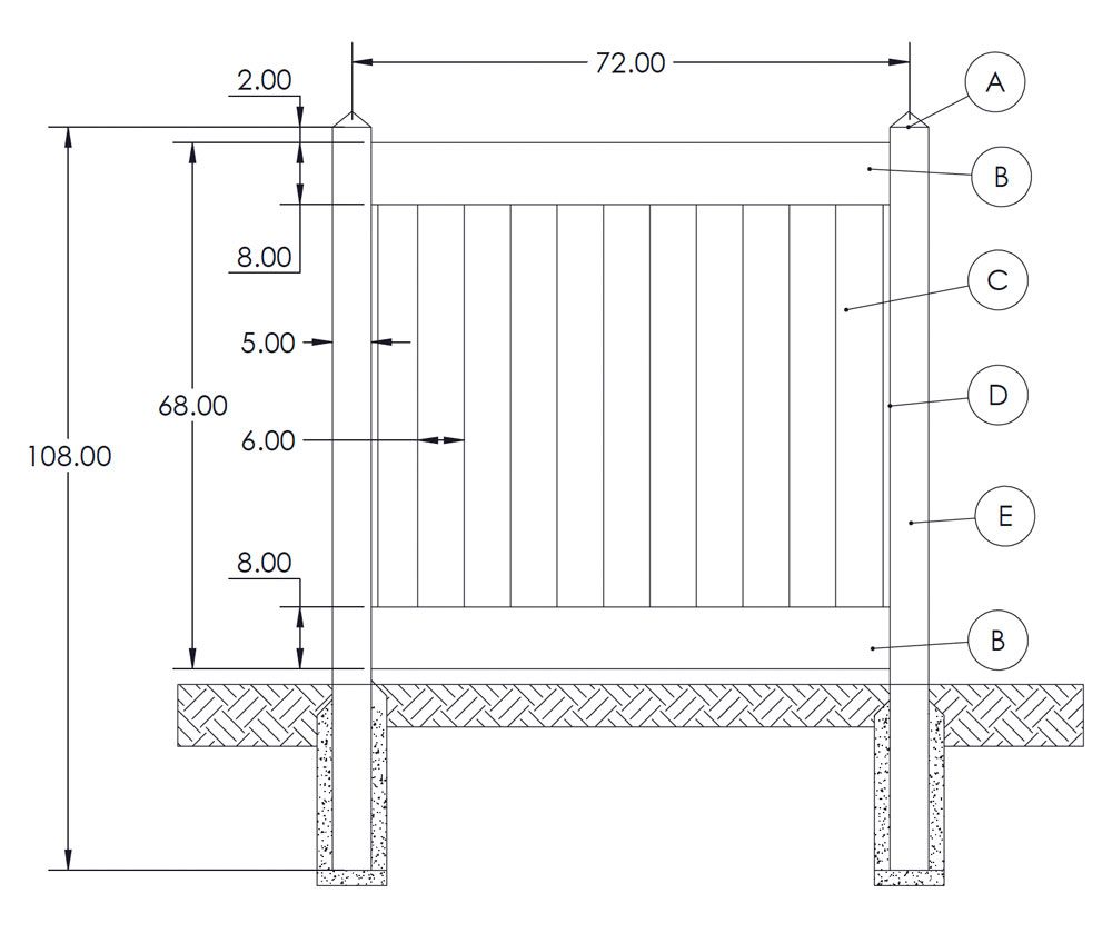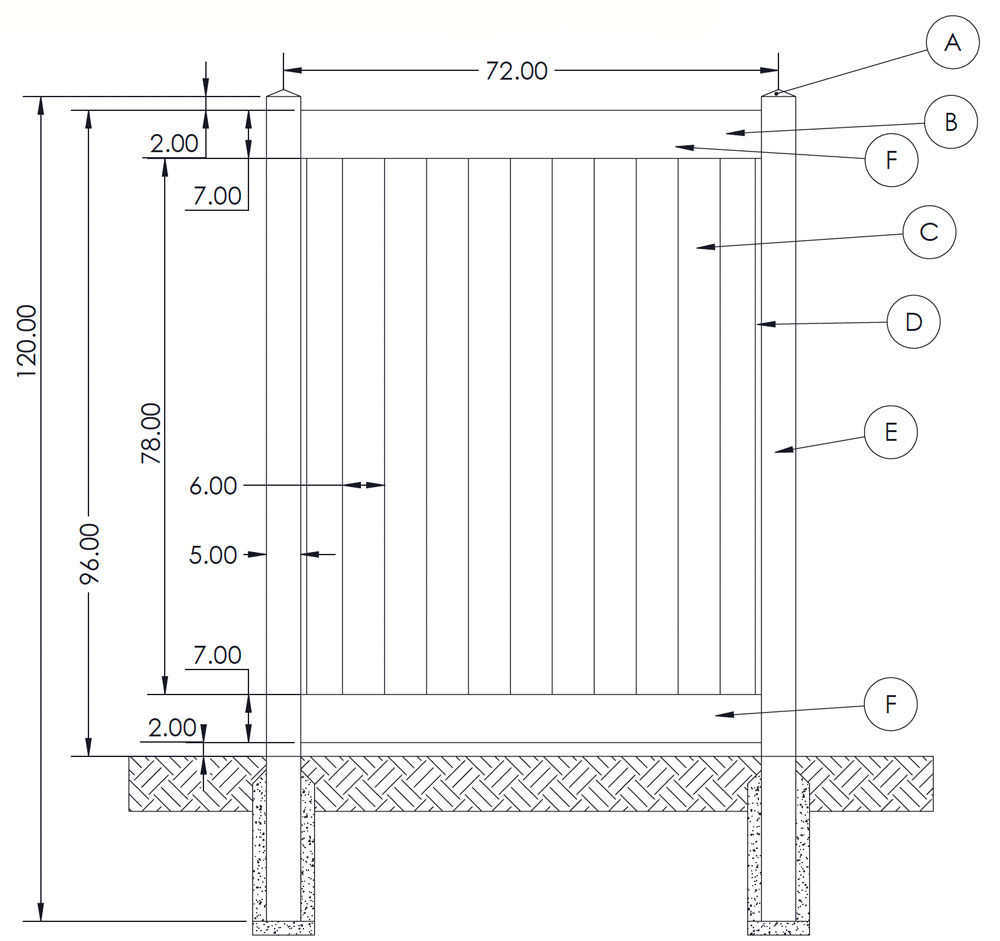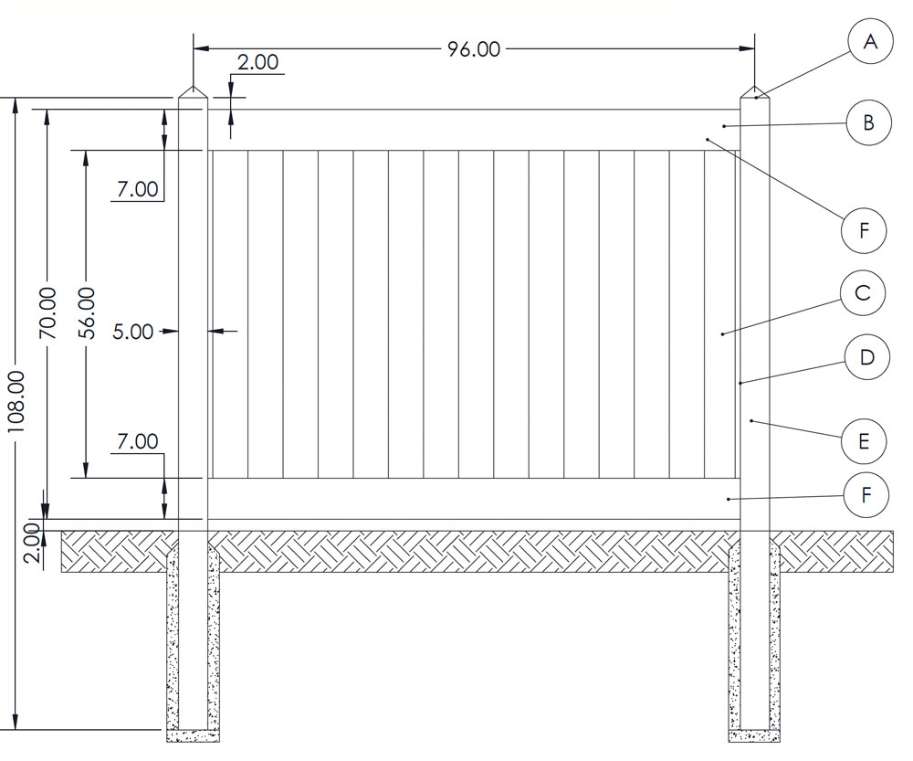 | B | 1 | LPRECUT | 12" × 96" Lattice Pannel |