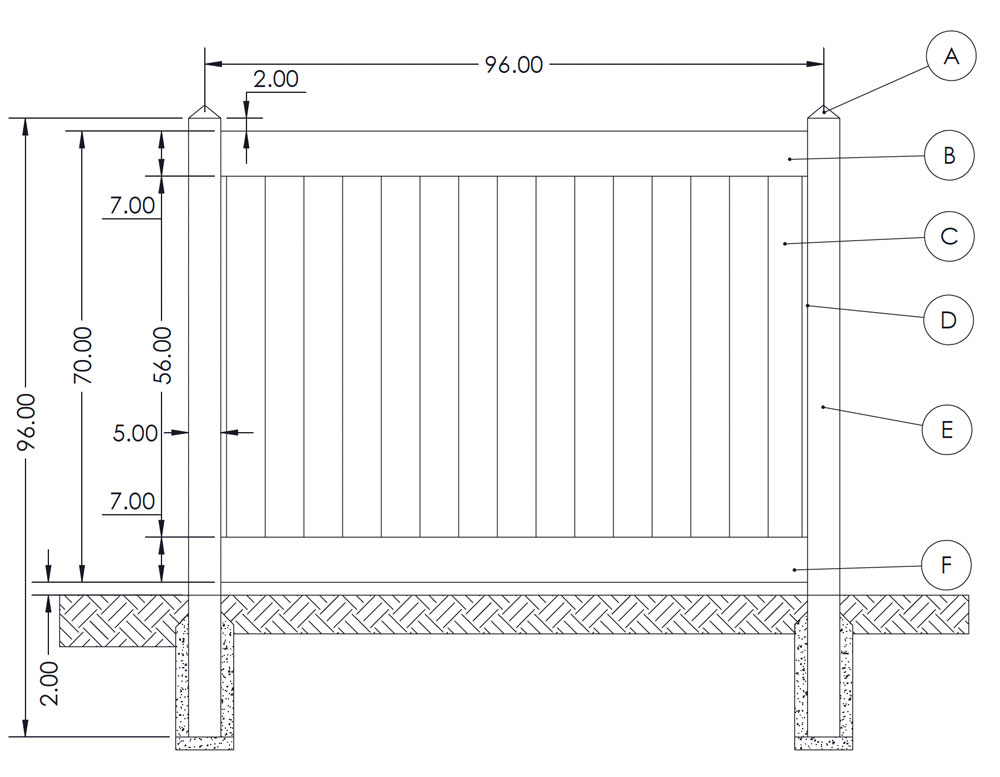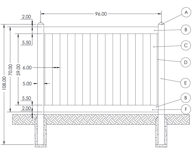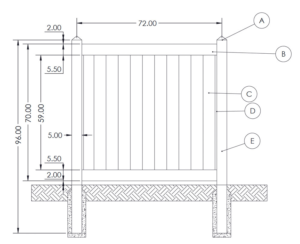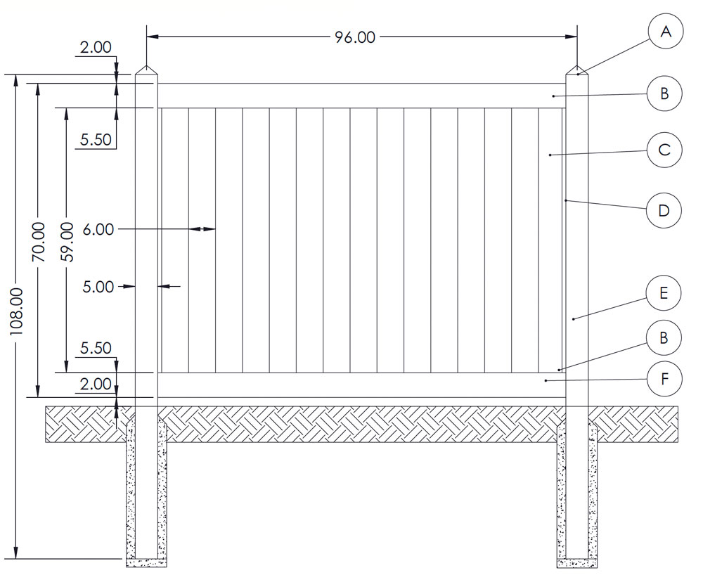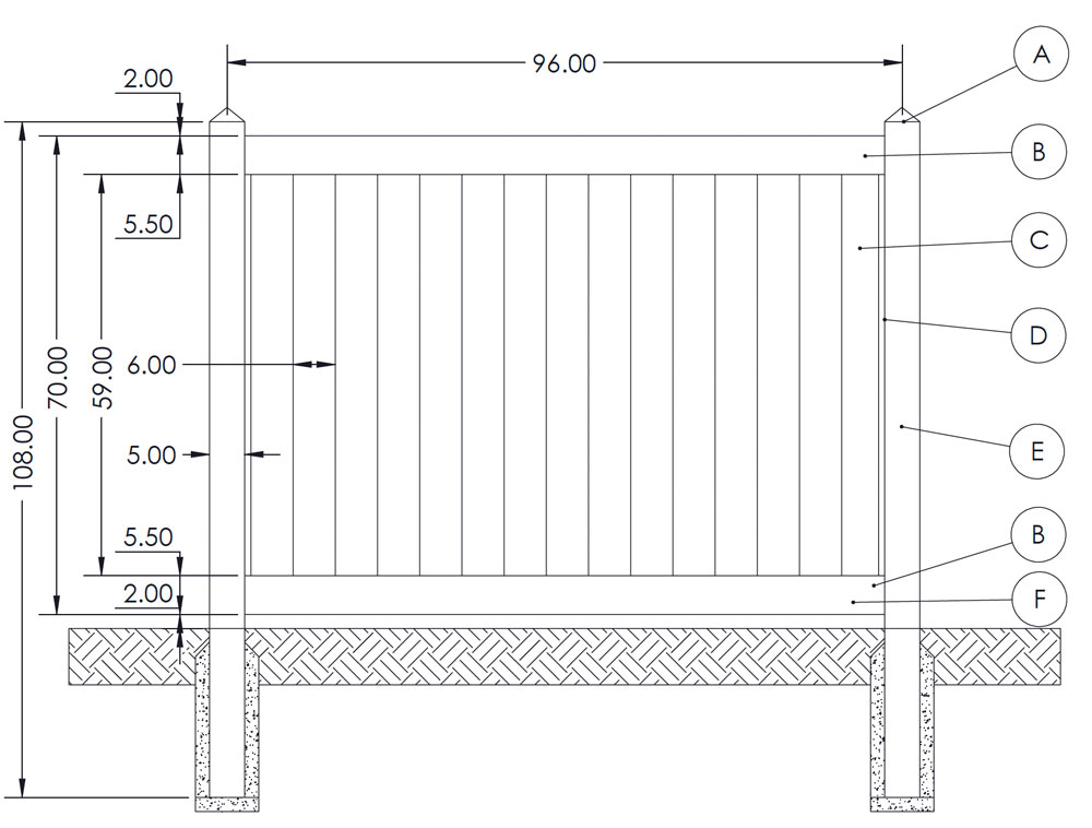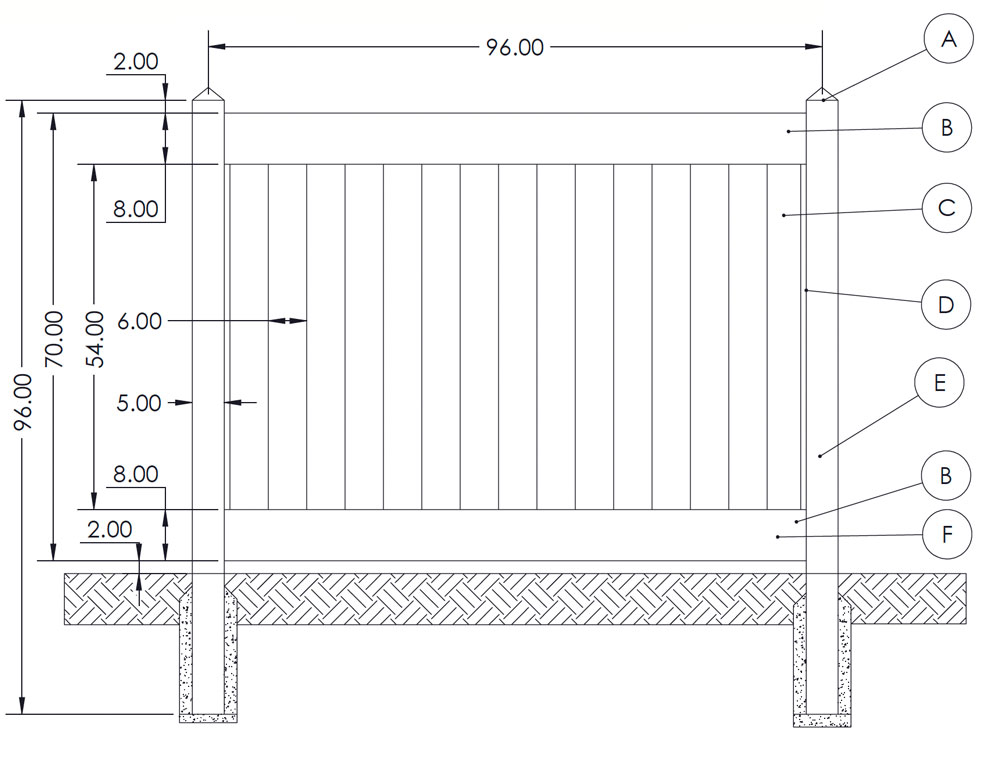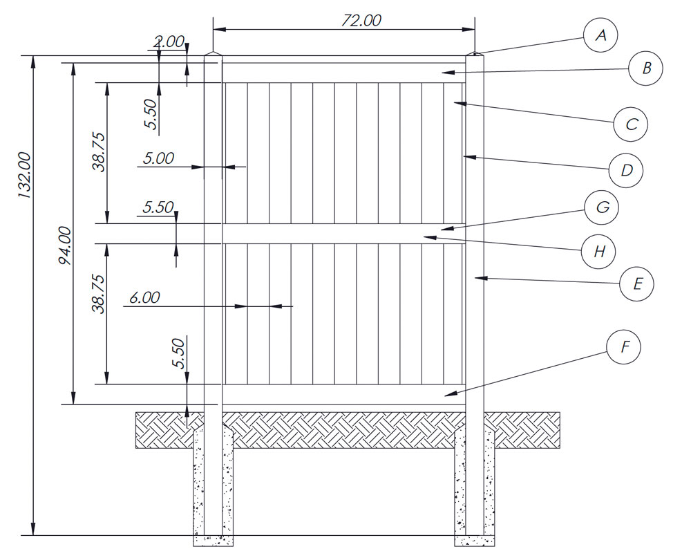 | B | 1 | LPRECUT | 12" × 96" Lattice Pannel |