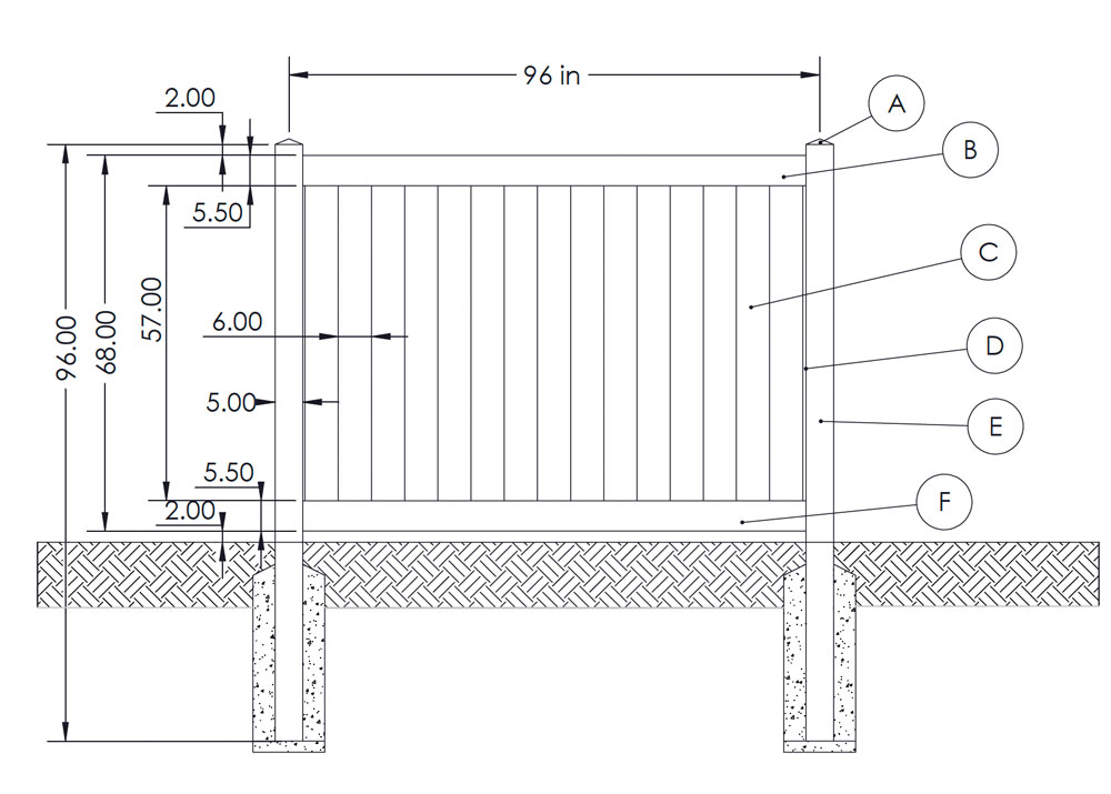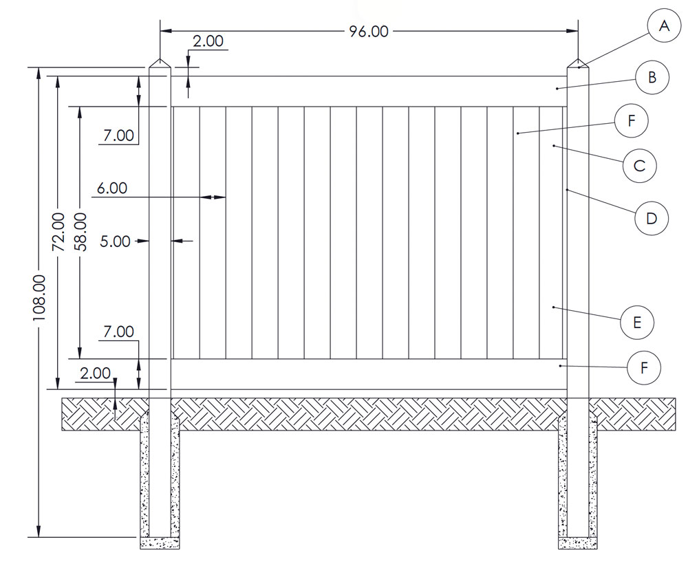 6' × 6' Nexus Privacy w/mid-rail (68")