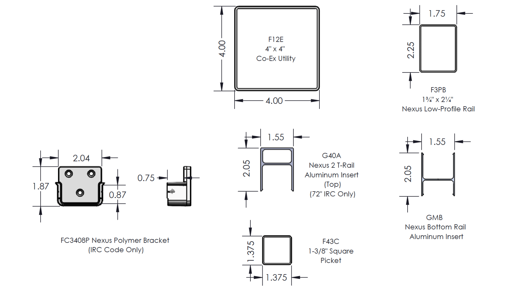 | 2 | F3PB | 1¾" × 2¼" Nexus Bottom Rail |